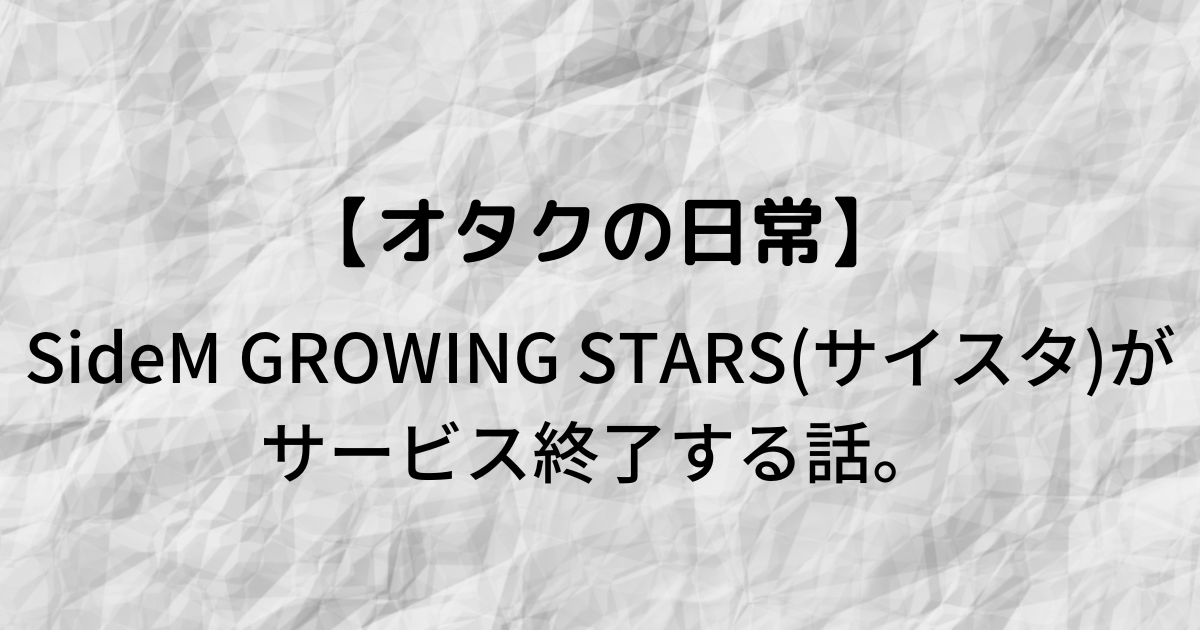 2023年4月4日に生配信にて、アイドルマスターSideM GROWING STARS(サイスタ)のサービス終了の発表がありました。